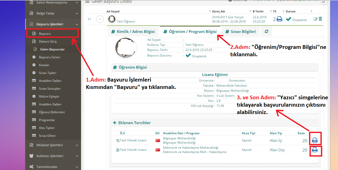 1- Başvuru formu çıktınızı e-Başvuru Sistemimizden temin edebilirsiniz. (Resimli Anlatım için tıklayınız.)