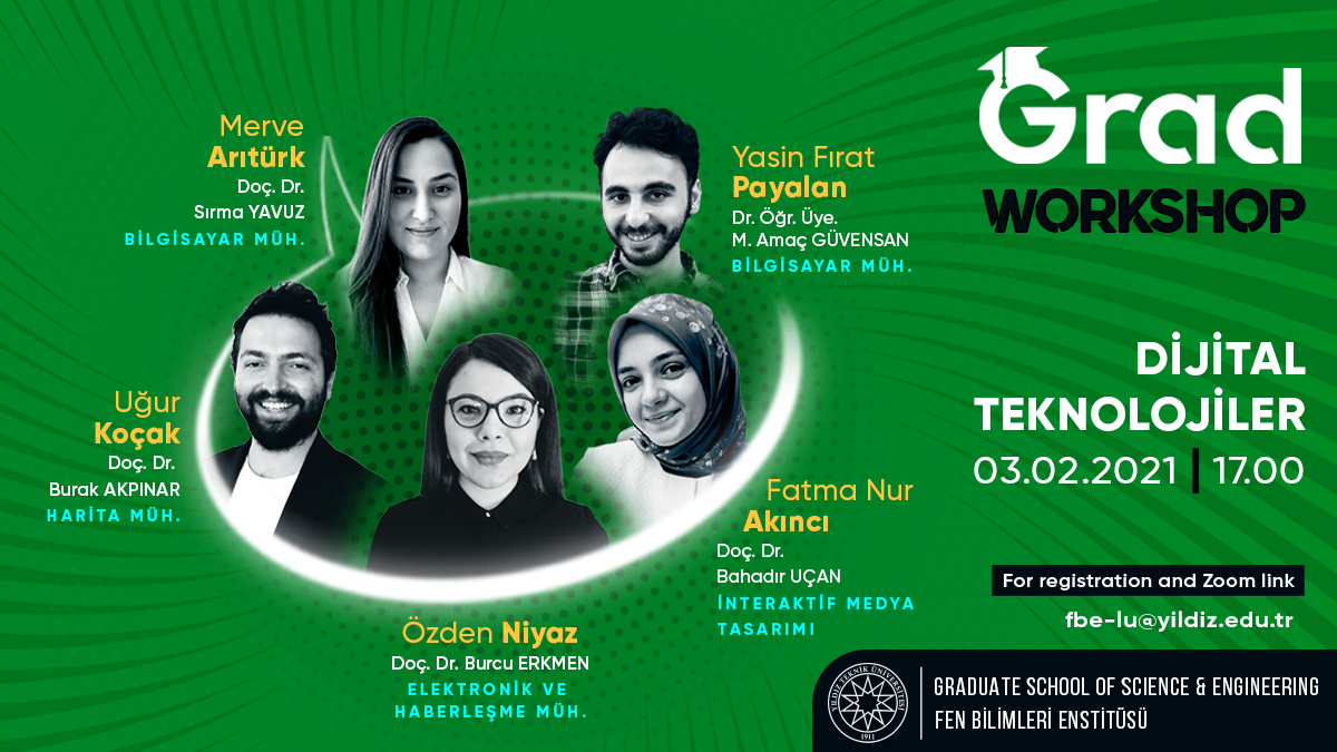 All of our workshops are currently offered as zoom meetings. For registration, please contact fbe-lu@yildiz.edu.tr. Please check ww.fbe.yildiz.edu.tr and Graduate School of Science and Engineering social media accounts for the upcoming events.